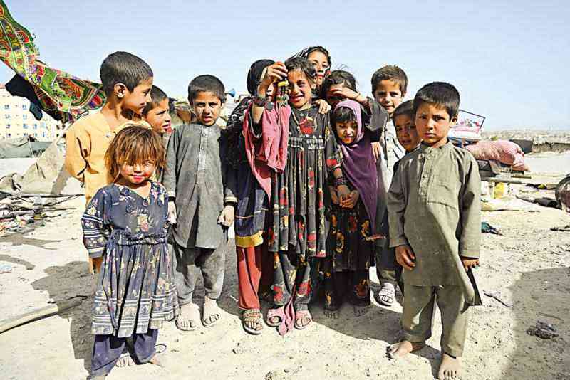 圖:失去住處的阿富汗兒童21日在喀布爾一個(gè)暫住營(yíng)地。\法新社