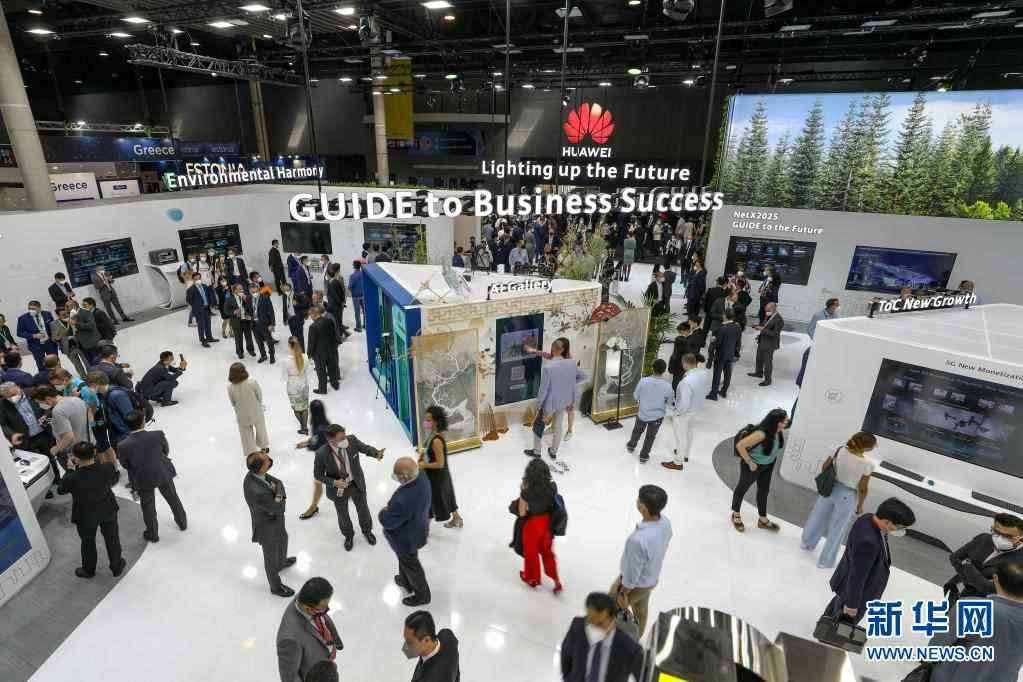 6月28日,觀眾在西班牙巴塞羅那舉行的世界移動通信大會華為展廳參觀。