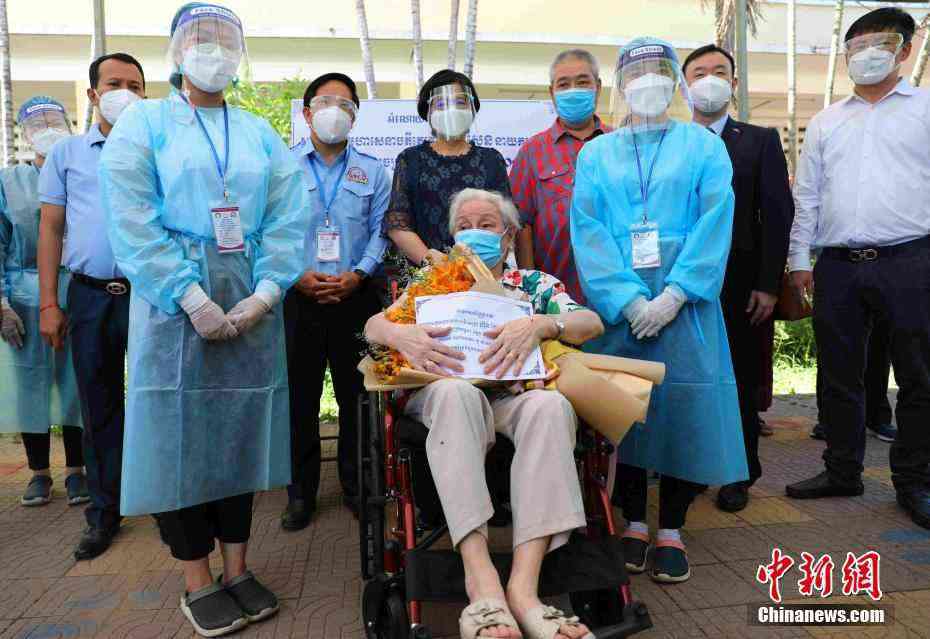 當(dāng)?shù)貢r(shí)間7月2日,駐柬使館常健公參一行赴金邊疫苗接種現(xiàn)場(chǎng),看望接種第二劑中國(guó)新冠疫苗的101歲華裔老人賀琴女士?!? 中新社記者 歐陽(yáng)開(kāi)宇 攝