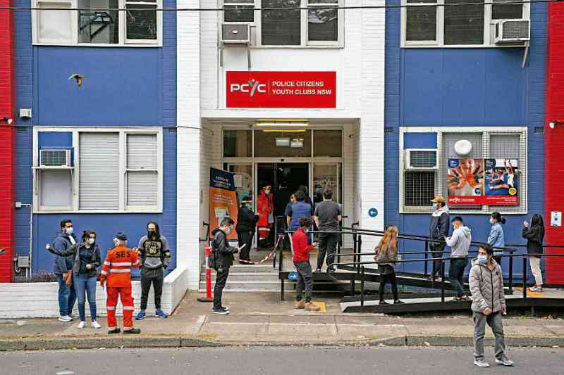 圖:悉尼民眾25日在疫苗中心外排隊。\路透社