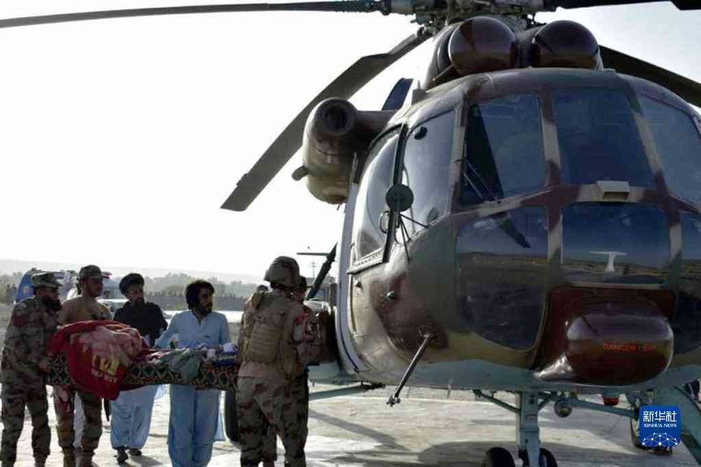 這張巴基斯坦國(guó)家災(zāi)難管理局提供的照片顯示,10月7日,在俾路支省赫爾奈地區(qū),人們轉(zhuǎn)移一名傷者。