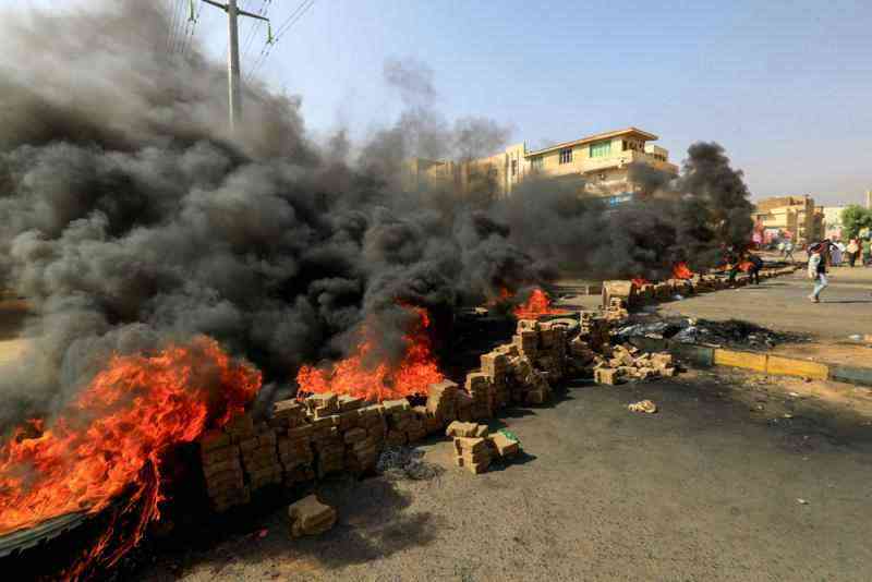 圖:蘇丹民眾25日在街道上點燃雜物,抗議軍事政變。\法新社