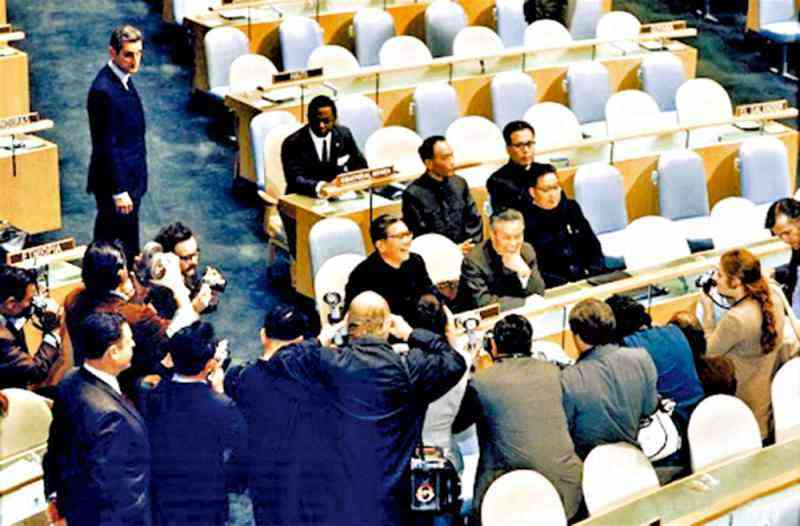 第2758號決議通過后,中國代表團成員走進會議大廳,會場內(nèi)爆發(fā)出陣陣歡呼和鼓掌聲。大多數(shù)國家的代表興高采烈,敘利亞人、巴基斯坦人、古巴人、阿爾巴尼亞人揮舞著雙手起立歡笑,坦桑尼亞人甚至高興地跳起舞來。歐洲人則比較克制。