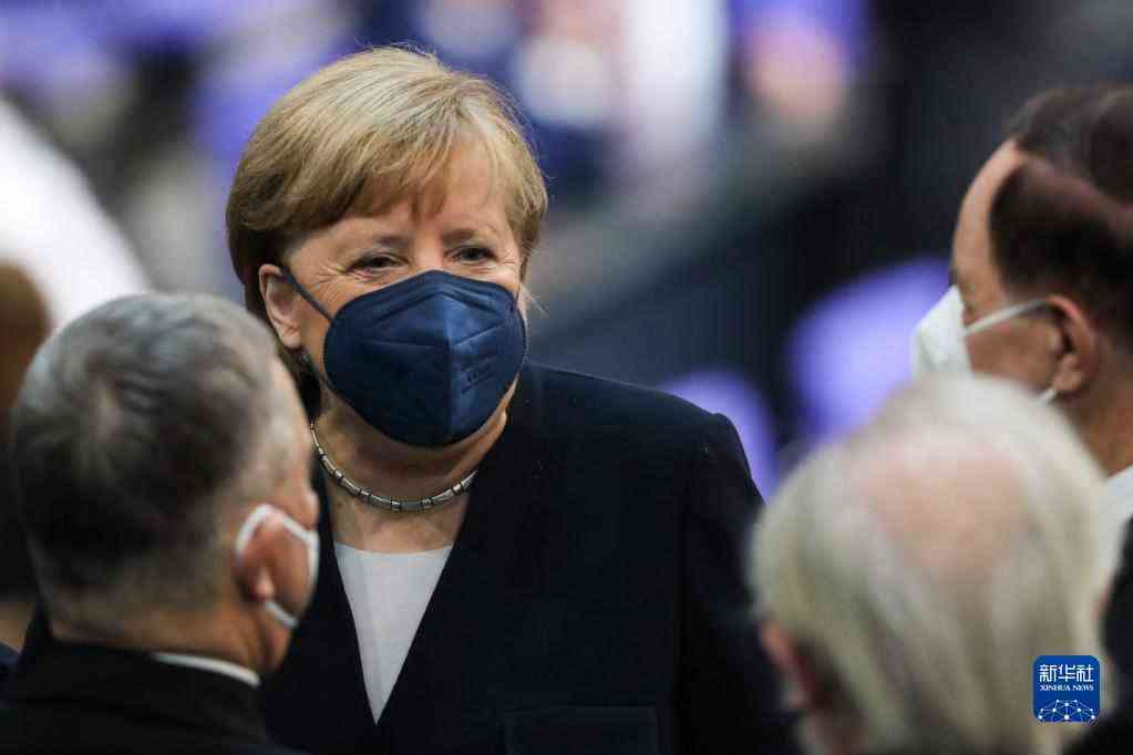 12月8日,在德國首都柏林的國會(huì)大廈,即將離任的德國總理默克爾(左二)在投票議程中交談。奧拉夫·朔爾茨8日在德國聯(lián)邦議院投票中成功當(dāng)選德國總理。新華社記者 單宇琦 攝