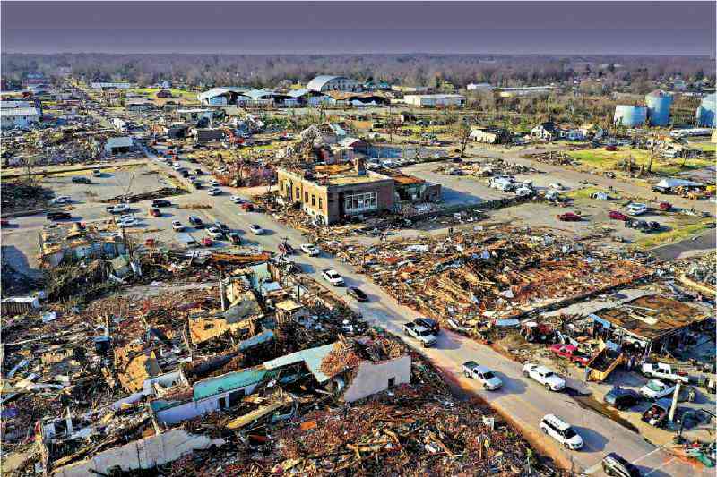 圖:龍卷風(fēng)過(guò)境后,肯塔基州梅菲爾德滿目瘡痍。\法新社