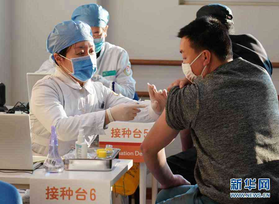 2021年1月3日,在位于北京市西城區(qū)廣安門外街道紅蓮社區(qū)衛(wèi)生服務站的接種點,醫(yī)護人員為接種人員注射疫苗。