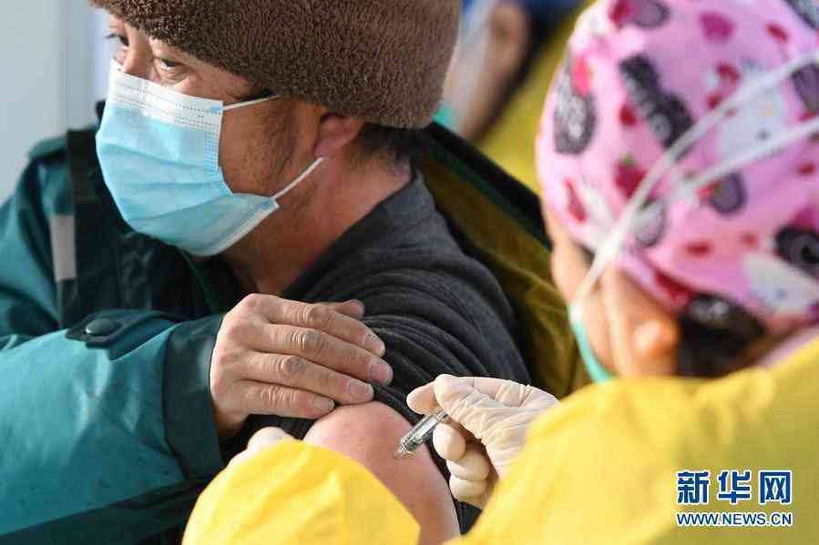 1月11日,在北京市海淀區(qū)學院路街道的一處臨時新冠疫苗接種點,醫(yī)務人員為接種人員接種新冠疫苗。新華社記者 任超 攝