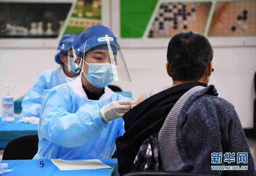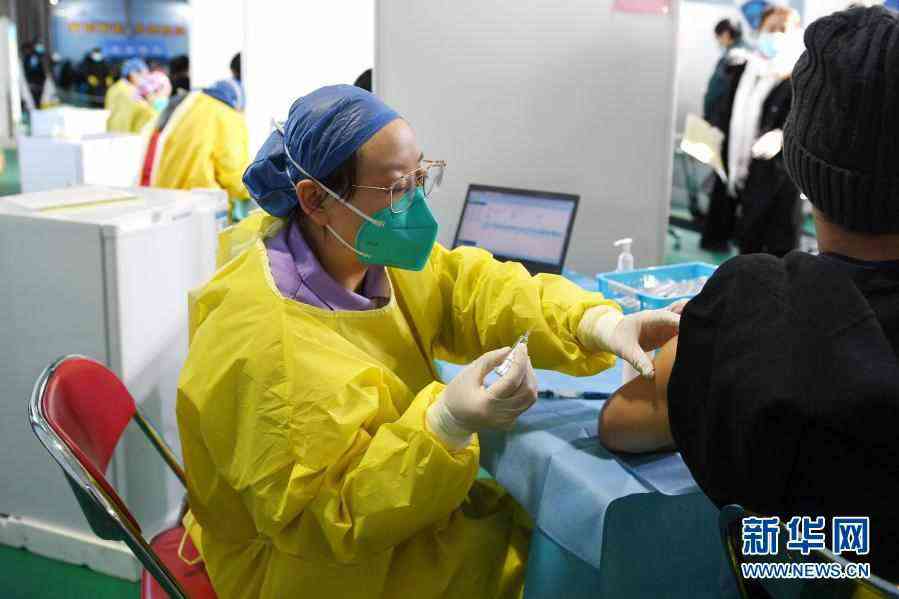 在北京市海淀區(qū)中關村街道臨時集中接種點,醫(yī)務人員為接種人員注射新冠疫苗(1月6日攝)。新華社記者 鞠煥宗 攝
