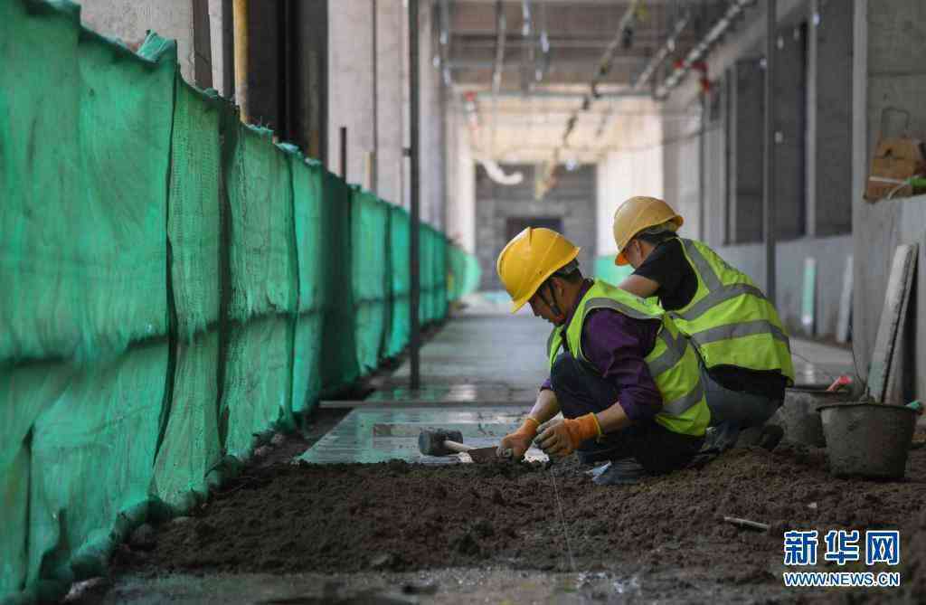 5月2日,工人在武漢同濟(jì)航天城醫(yī)院工地裝修施工。新華社記者 程敏 攝