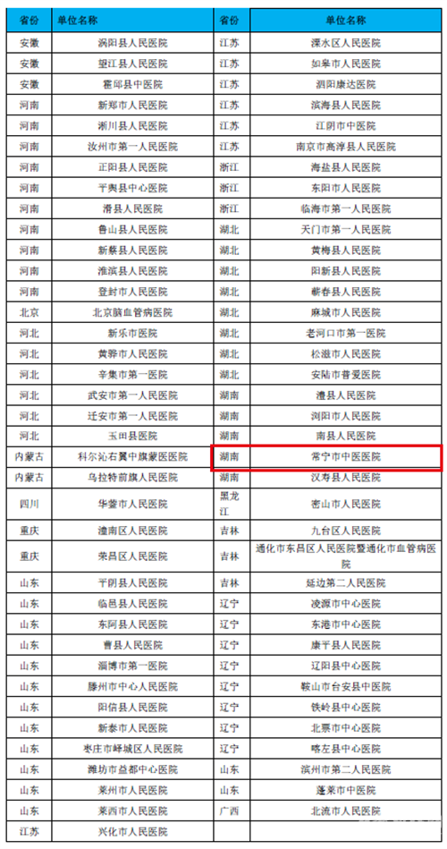 “基層血管健康管理中心”項(xiàng)目(第一期)自今年4月份正式啟動(dòng)以來,全國(guó)共有118家意向單位進(jìn)行申報(bào),經(jīng)項(xiàng)目辦公室及學(xué)會(huì)專家的雙重審核,最終有包括常寧市中醫(yī)醫(yī)院在內(nèi)的89家單位獲此殊榮。常寧市中醫(yī)醫(yī)院為湖南省首批通過認(rèn)證的6家醫(yī)院之一。