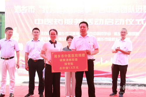 在活動(dòng)現(xiàn)場由湘鄉(xiāng)市中醫(yī)醫(yī)院黨委書記劉盡暉代表醫(yī)院向金藪鄉(xiāng)衛(wèi)生院捐贈(zèng)醫(yī)院編撰的《中醫(yī)中藥與養(yǎng)生》、《中醫(yī)單方驗(yàn)方選錄》書籍共400本;業(yè)務(wù)副院長易彩飛代表醫(yī)院向金藪鄉(xiāng)衛(wèi)生院捐贈(zèng)醫(yī)院自制接骨貼100帖和價(jià)值1.5萬元的藥品。