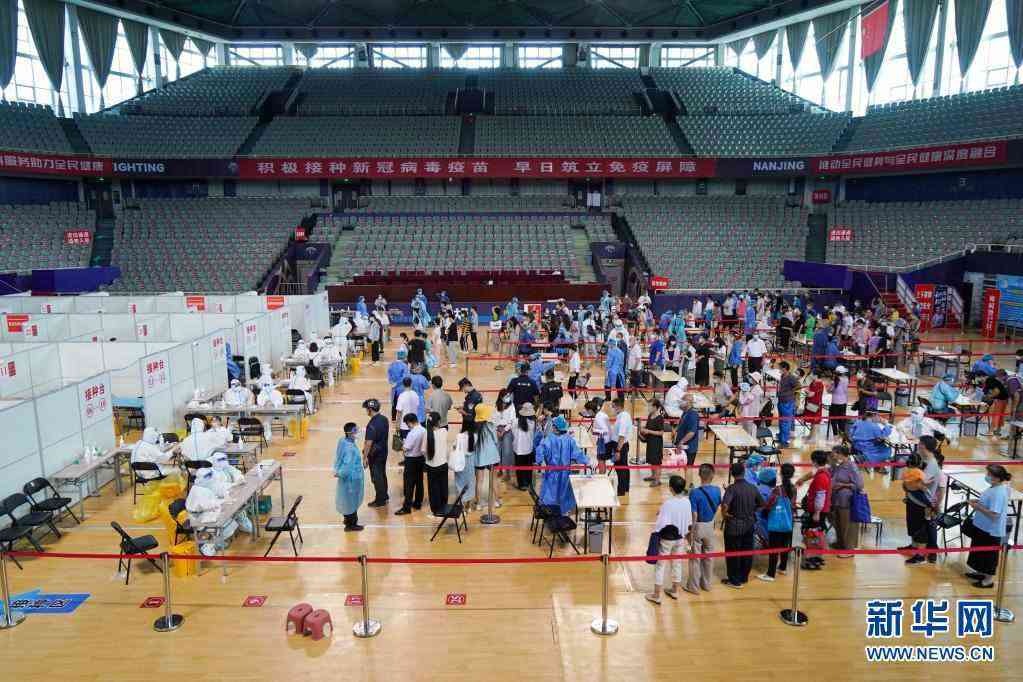 7月22日,市民在南京市鼓樓區(qū)五臺山體育中心體育館內(nèi)進(jìn)行核酸檢測取樣。新華社記者 李博 攝