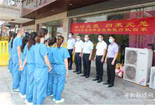 8月19日,衡陽縣縣委副書記、代縣長孫浩(右三),縣委常委、宣傳部長李樺(右二),縣政府辦主任、縣人大副主任候選人龍國華(右一),縣人民政府副縣長候選人劉禮根(右四)、縣衛(wèi)健局黨委書記、局長呂蔭湘(右五)等領(lǐng)導(dǎo)看望慰問衡陽縣援株返縣醫(yī)護(hù)人員