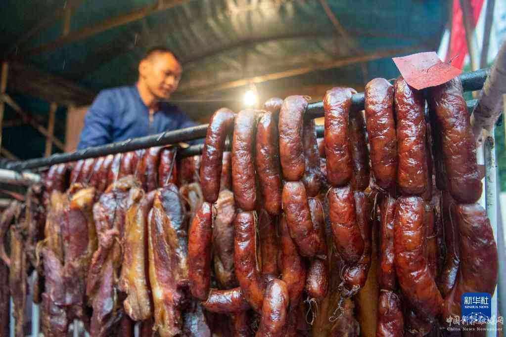 12月18日,在位于重慶市渝北區(qū)龍溪街道的“無煙熏制臘肉便民服務(wù)點”,工作人員在整理熏制好的臘味年貨。