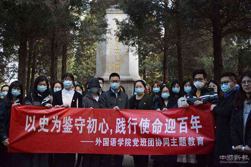4月3日上午,北京科技大學(xué)外國語學(xué)院組織學(xué)生黨員在圓明園“三一八”革命烈士公墓,開展“祭奠先烈魂,傳承英雄志”集體祭奠活動。(學(xué)校供圖)