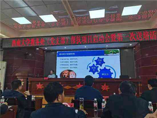 會(huì)議由將軍希望小學(xué)黨支部書(shū)記、校長(zhǎng)趙祖祿致歡迎詞,他表示,要抓住本次乃至今后的送培活動(dòng),坦誠(chéng)、結(jié)合實(shí)際地開(kāi)展相關(guān)工作,感謝吳處長(zhǎng)一行為將軍希望小學(xué)、為桐梓教育的發(fā)展所作出的傾情幫扶。接著,易鵬同志代表西南大學(xué)教務(wù)處為婁山關(guān)街道將軍希望小學(xué)授牌。