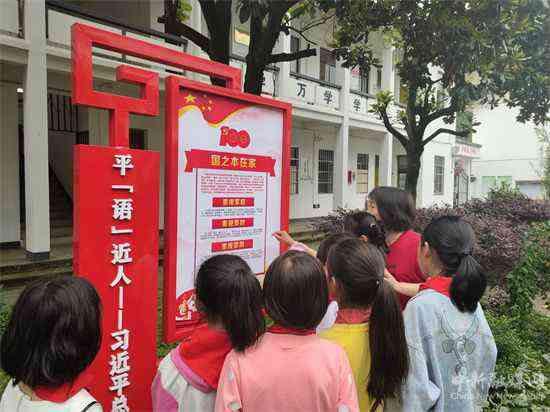近日,在休寧縣藍(lán)田中心小學(xué)校園內(nèi),花圃草坪上的4塊紅色展牌格外引人注目,課間師生不時(shí)駐足觀看、朗讀著上面的內(nèi)容。
