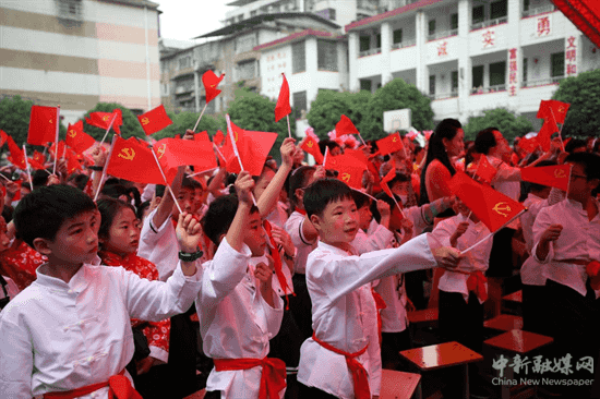 全場唱起《沒有共產(chǎn)黨就沒有新中國》