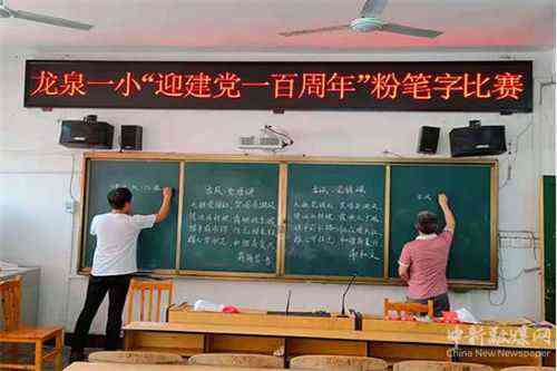 新田縣龍泉一小舉行“迎建黨一百周年”粉筆字比賽