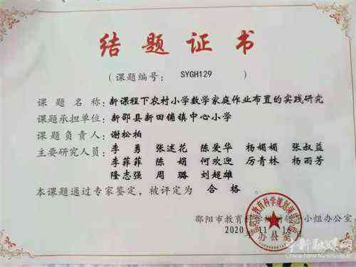 2017年初,應(yīng)廣大數(shù)學(xué)教師的要求,他主持了一個(gè)市級(jí)數(shù)學(xué)課題的研究(《新課程下農(nóng)村小學(xué)數(shù)學(xué)家庭作業(yè)布置的實(shí)踐研究》)。三年來,他組織參與課題研究的教師深入學(xué)習(xí)理論知識(shí),不斷提高研究水平,虛心向?qū)<艺?qǐng)教研究經(jīng)驗(yàn),認(rèn)真做好資料的收集與整理,精心撰寫開題報(bào)告與結(jié)題總結(jié),積極推廣研究成果,直到課題圓滿結(jié)題。