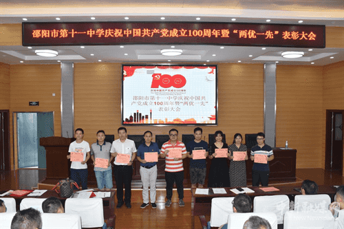 2021年7月1日下午,邵陽市第十一中學(xué)黨員教師齊聚5樓報告廳,歡慶共產(chǎn)黨百年華誕,喜迎“兩優(yōu)一先”七一表彰大會。