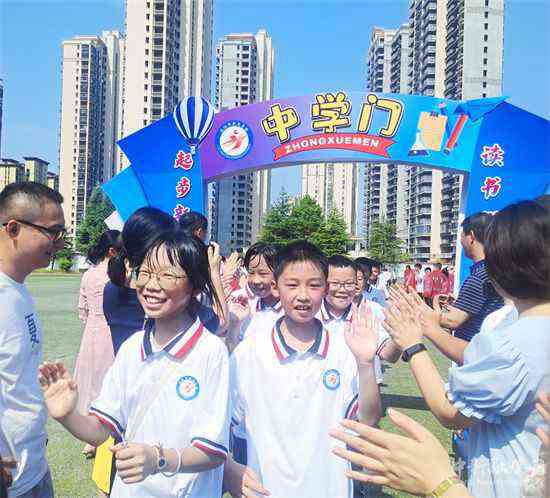 會(huì)操結(jié)束后,七年級學(xué)生帶著對初中生活的期待和夢想走進(jìn)中學(xué)門,七年級全體教師在中學(xué)門處迎接祝賀他們正式成為一名中學(xué)生。(通訊員  易曉霞)