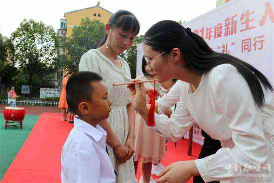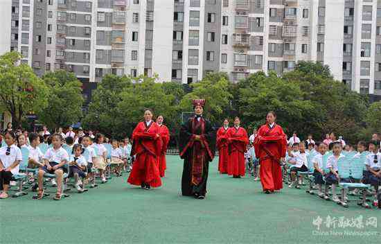 在當(dāng)天的活動(dòng)中,該校按照古法,家長授尺,學(xué)生磬折,敲頭、敲肩、敲身,老師為學(xué)生朱砂啟智,鼓勵(lì)學(xué)生敏而好學(xué)、勵(lì)志報(bào)國、有禮有節(jié)。 (特約記者 巢志斌 攝影報(bào)道)