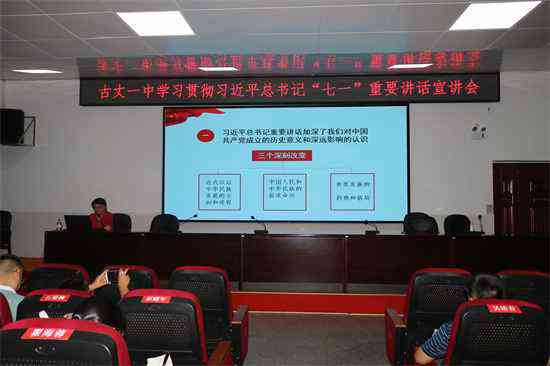 9月13日晚,湘西州古丈一中全體教職工在德澤樓六樓多媒體報告廳集中,舉行學習貫徹習近平總書記“七一”重要講話宣講會。