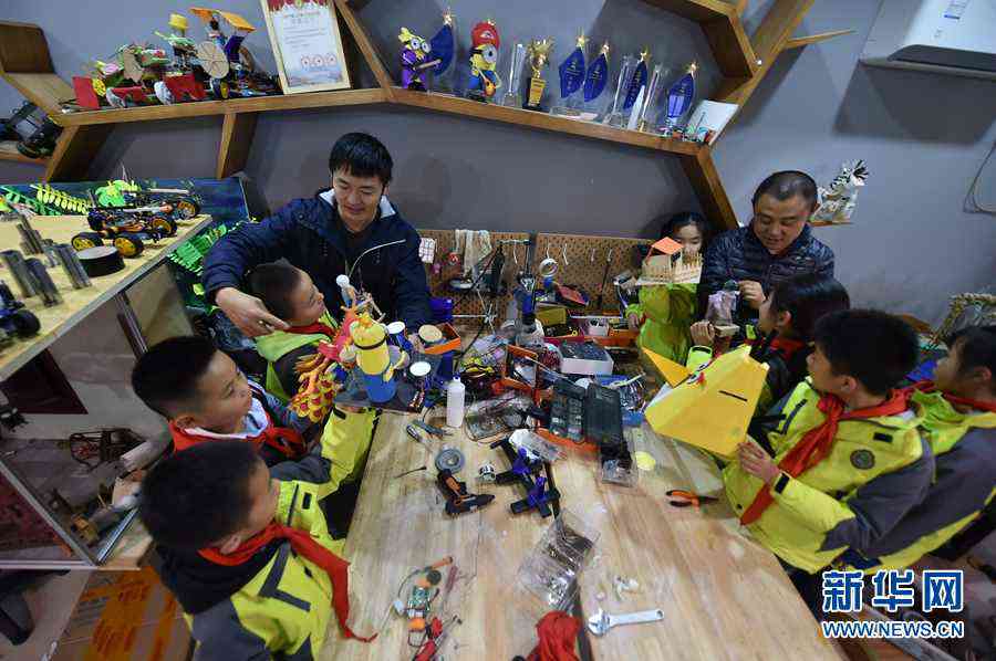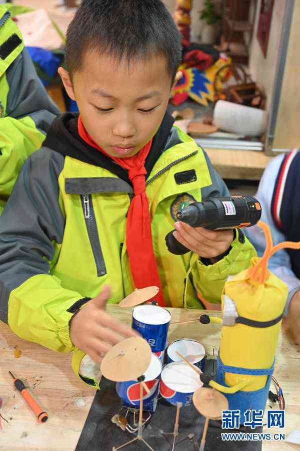 11月15日,下午三點(diǎn)半放學(xué)后,該校的小創(chuàng)客來到學(xué)校“酷玩創(chuàng)客”工作間,在老師的指導(dǎo)下“奇思妙想”,孩子們有的發(fā)揮自己的想象力和創(chuàng)造力,用聲、光、電、機(jī)械結(jié)構(gòu)以及智能編程等方式,使得課文中的圖畫及世界名畫“動(dòng)”起來;有的利用各種廢舊物,制作能說會(huì)動(dòng)的科創(chuàng)作品。新華網(wǎng)發(fā)(楊曉原 攝)
