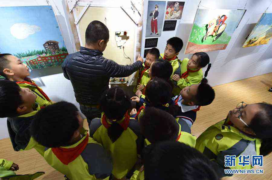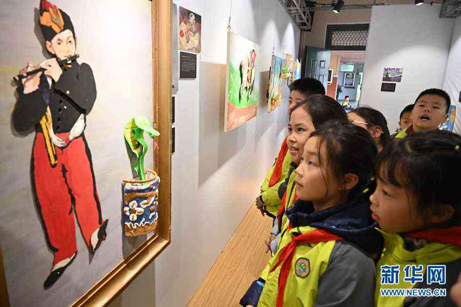 11月15日,孩子們?cè)谟^看“會(huì)動(dòng)”的世界名畫吹笛少年。