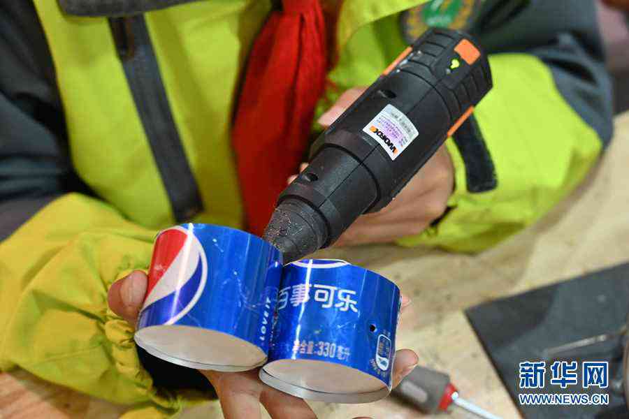 11月15日,小創(chuàng)客用廢舊的易拉罐制作科創(chuàng)作品。