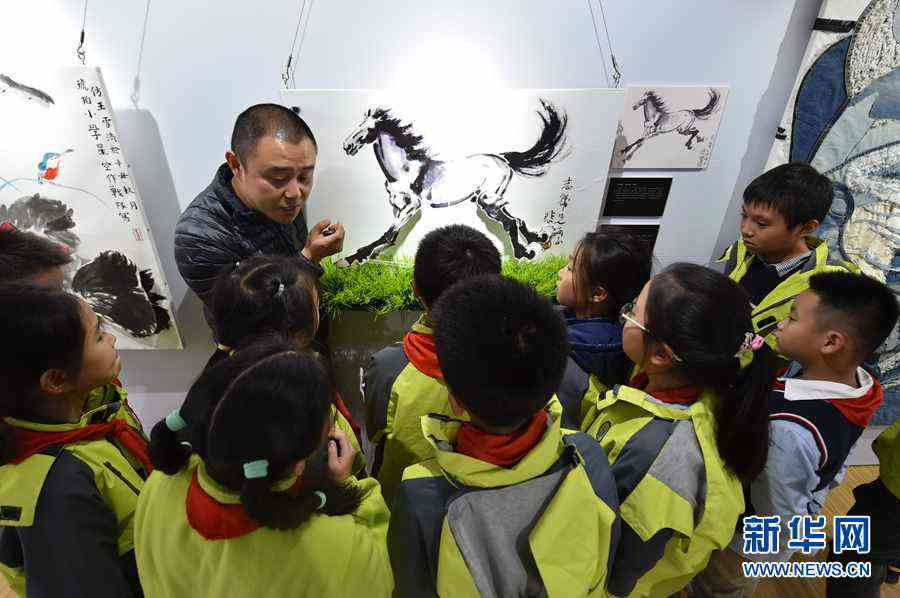 11月15日,孩子們?cè)谟^看“會(huì)動(dòng)”的徐悲鴻奔馬圖。
