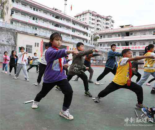 11月18日,在湖南省湘西自治州保靖縣毛溝小學(xué),學(xué)生在老師的指導(dǎo)下學(xué)習(xí)武術(shù)。今年秋季“雙減”政策落地以來,該校通過"彈性離校、自主點(diǎn)單"課后服務(wù)模式,開設(shè)武術(shù)、剪紙、刺繡、足球、籃球等課后延時(shí)服務(wù)課程,減少學(xué)生作業(yè)負(fù)擔(dān),讓他們課后學(xué)得好,玩得趣,盡情感受"延時(shí)服務(wù)"的快樂。(俞采華 陳亞平)