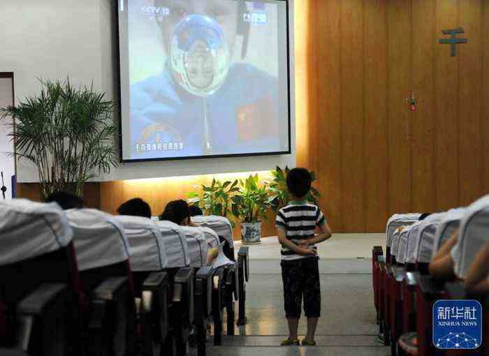 △2013年6月20日,杭州保俶塔實(shí)驗(yàn)學(xué)校的一位小學(xué)生站在走道上觀看太空授課。