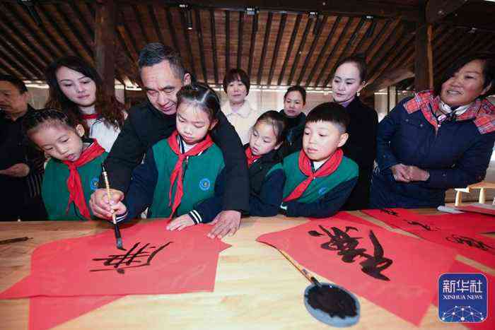 學(xué)生們寫書法、看話劇
