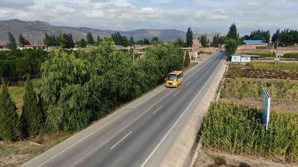 渭州學校的校車行駛在田野之間。新華社記者郎兵兵 攝