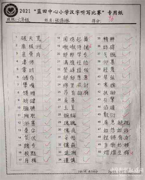 休寧縣藍(lán)田小學(xué):漢字聽寫賽 傳承漢字美