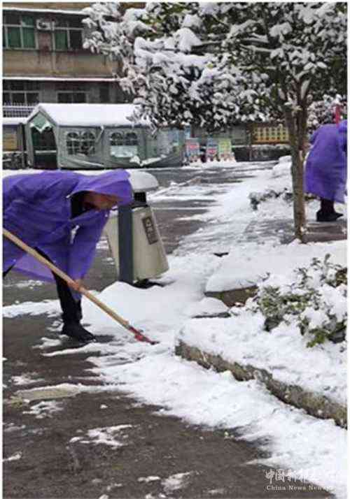 當(dāng)天,雪花漫天紛飛,天氣寒冷,參與活動的教師卻熱情高漲。你一鍬,我一鍬,齊心協(xié)力,經(jīng)過近三小時的奮戰(zhàn),學(xué)校門口入學(xué)通道、校園主路和教學(xué)樓前臺階的積雪被徹底清理,清掃出一條條“平安路”。