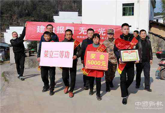 中國新報訊(通訊員 武時化)“這是春節(jié)后我們?nèi)沂盏阶畲笞詈玫亩Y物!”軍屬周慶芳夫婦披掛著“一人立功、全家光榮”的大紅綬帶,接過兒子榮立個人三等功喜報后滿臉笑容激動地說。2月24日,由安徽省休寧縣人武部、縣退役軍人事務(wù)局和藍(lán)田鎮(zhèn)政府組成的送喜報隊伍來到該縣藍(lán)田鎮(zhèn)迪嶺村,為在部隊榮立個人三等功的周文鋮家庭送上喜報和5000元獎勵金,感謝他們對國防事業(yè)的支持和奉獻(xiàn),并勉勵其子女安心軍營、再立新功,為家鄉(xiāng)人民爭光。