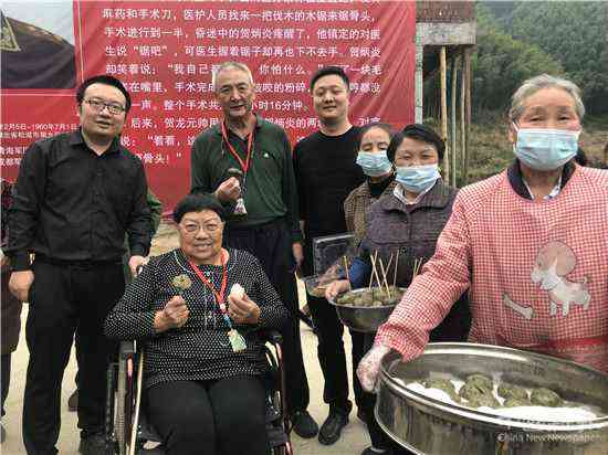 聞知賀炳炎將軍女兒女婿要來綏寧看望老區(qū)群眾,鄉(xiāng)親們一周前就在家做準(zhǔn)備歡迎將軍后人。賀北生夫婦一到,好客的鄉(xiāng)情們立刻端出熱騰騰的水?;亵巍⑾銍妵姷碾u蛋、鴨蛋等農(nóng)家特產(chǎn)招待他們。