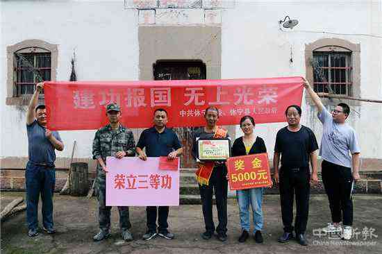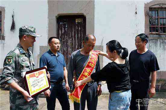 中國(guó)新報(bào)訊(通訊員 鄭翠濤 武時(shí)化)拉橫幅、披綬帶、發(fā)獎(jiǎng)狀、送獎(jiǎng)金,噓寒問(wèn)暖,掌聲不斷……5月12日,安徽省休寧縣人武部、退役軍人事務(wù)局和商山鎮(zhèn)政府相關(guān)負(fù)責(zé)人,來(lái)到商山鎮(zhèn)阜田村,將立功喜報(bào)和5000元獎(jiǎng)金,送到榮立三等功現(xiàn)役軍人汪志軍的父親手里,向他們?nèi)冶硎咀YR!