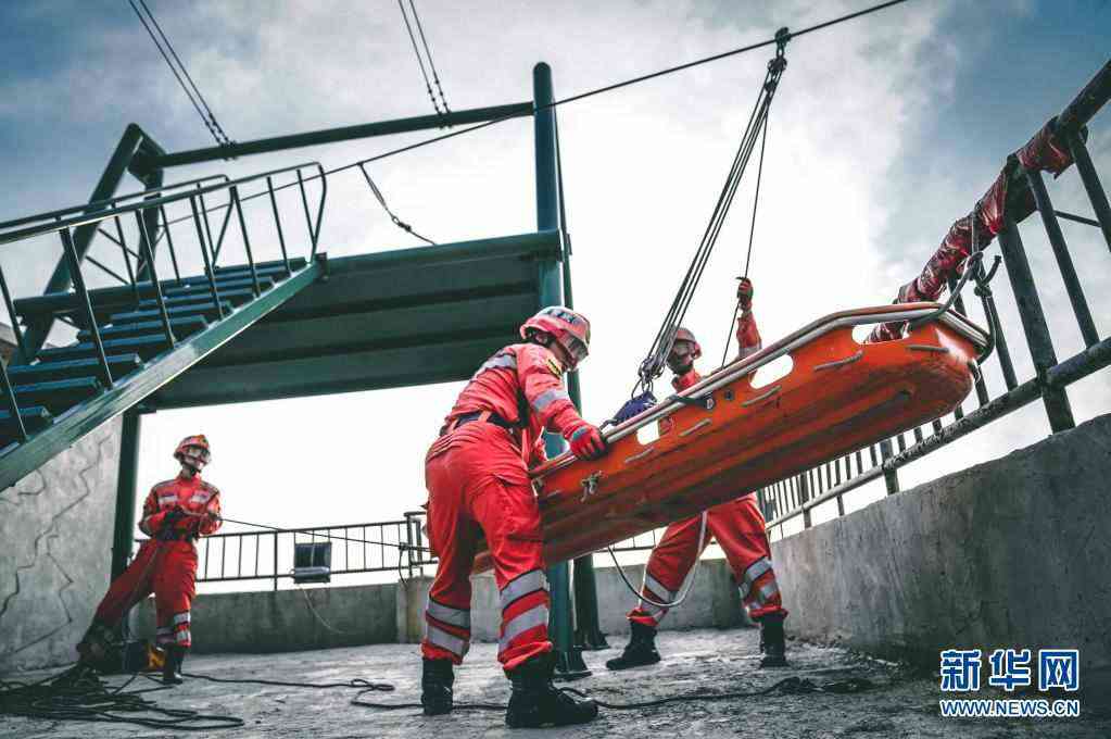 武警北京總隊機動一支隊官兵組織高空救援課目訓練(2020年8月11日攝)。新華社發(fā)(申鴻浩 攝)