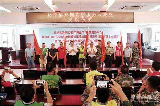 “我志愿加入雙擁志愿服務(wù)隊,我承諾:盡己所能,不計報酬;幫助他人,服務(wù)社會;踐行志愿奉獻精神,傳承愛國擁軍傳統(tǒng),為建設(shè)和諧美好社會貢獻力量!”48名志愿者代表身著志愿隊服,舉起右拳,莊嚴宣誓,鄭重承諾。5月13日,安徽省黃山市休寧縣舉行了黃山市首支雙擁志愿服務(wù)隊成立授旗儀式。該縣雙擁工作領(lǐng)導(dǎo)小組成員單位和21個鄉(xiāng)鎮(zhèn)、四個社區(qū)、駐軍部隊相關(guān)負責(zé)人以及雙擁志愿服務(wù)隊代表等近100人參加了成立授旗儀式。