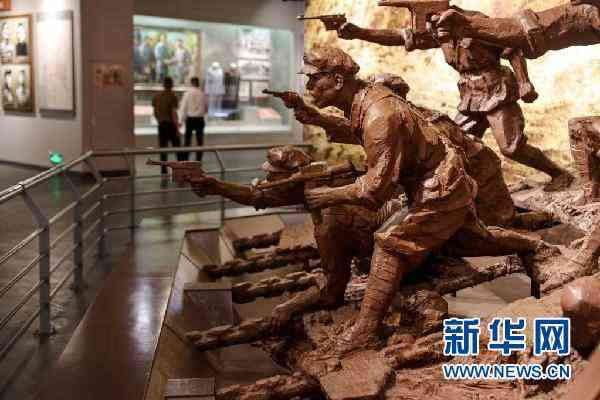 甕安縣猴場鎮(zhèn),猴場會議陳列館,有一座紅軍戰(zhàn)士與老鄉(xiāng)低頭扎竹筏的雕塑。