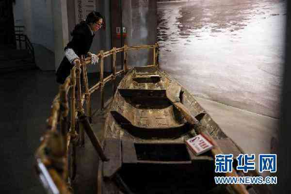 工作人員在遵義會議陳列館內查看紅軍南渡烏江時使用的木船(1月26日攝)。新華社記者 歐東衢 攝