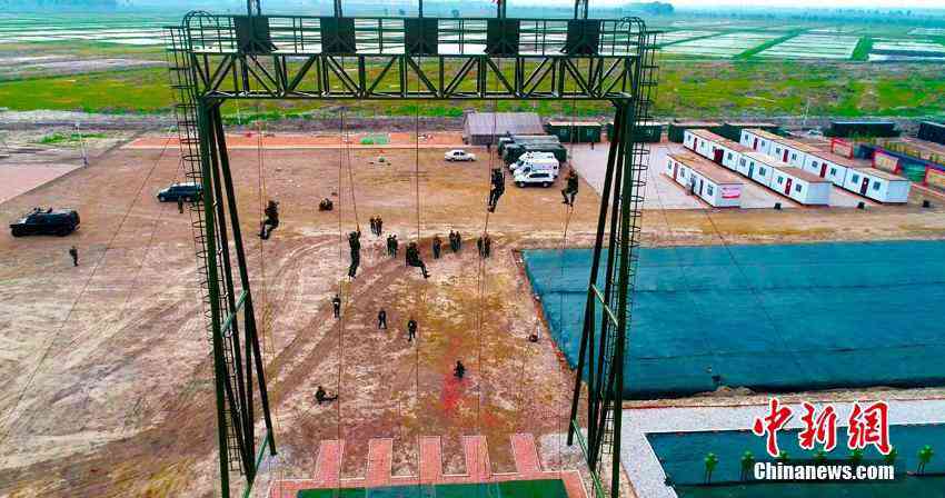 官兵進(jìn)行攀爬及快速下降演練。常運(yùn)科 攝