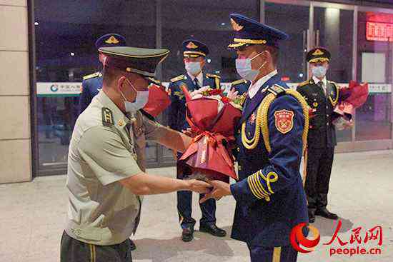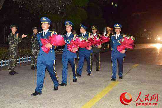支隊領導到站臺迎接,并為5名隊員獻上鮮花。涂創(chuàng)攝