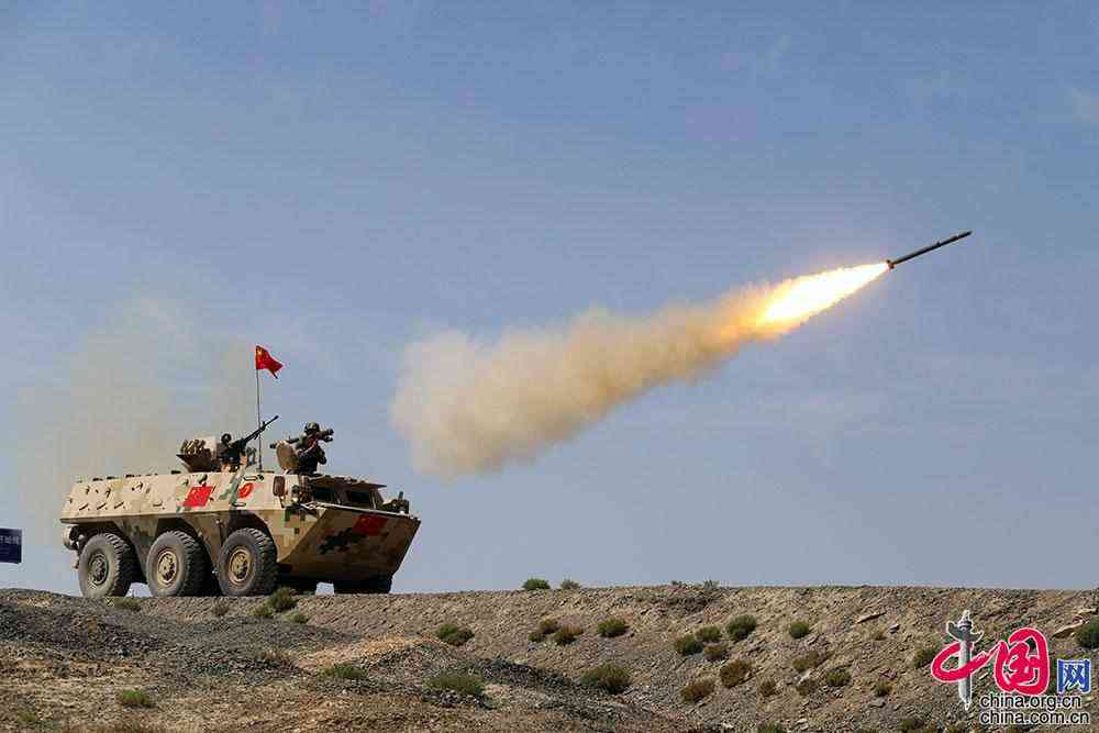 8月24日,“國際軍事比賽-2021”中國庫爾勒賽區(qū)“晴空”項(xiàng)目首場比賽技能賽在庫爾勒開賽,中國參賽隊(duì)員在戰(zhàn)車上發(fā)射便攜式防空導(dǎo)彈。張嘉成 攝