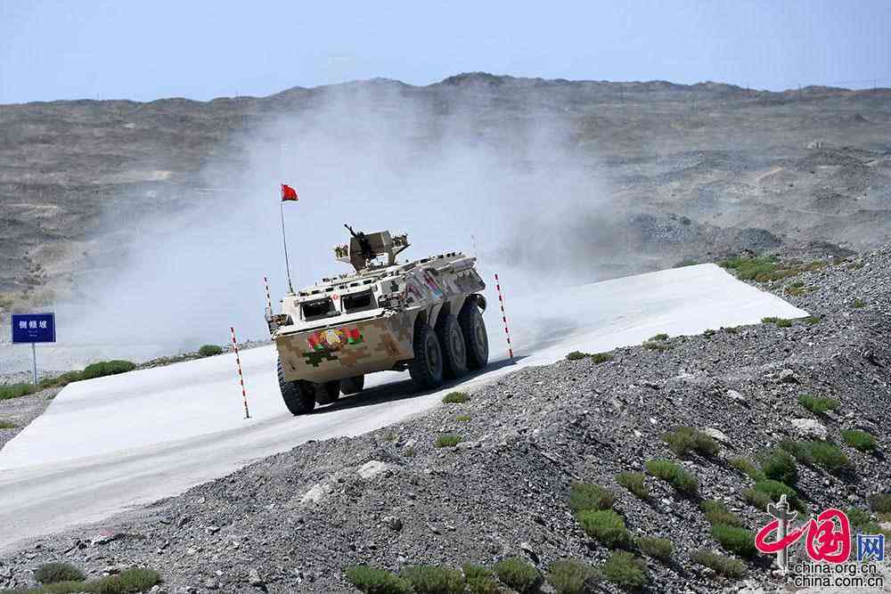 8月24日,“國際軍事比賽-2021”中國庫爾勒賽區(qū)“晴空”項(xiàng)目首場比賽技能賽在庫爾勒開賽,中國海軍參賽車組全力沖向終點(diǎn)。郭中正 攝