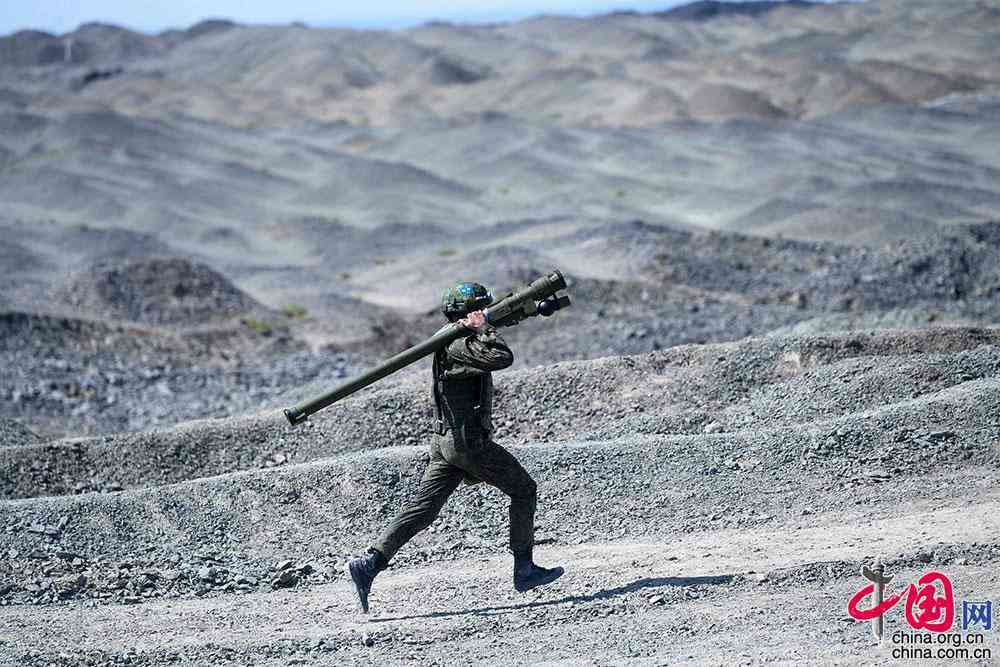 8月24日,“國際軍事比賽-2021”中國庫爾勒賽區(qū)“晴空”項(xiàng)目首場比賽技能賽在庫爾勒開賽,俄羅斯參賽隊(duì)員向?qū)棸l(fā)射區(qū)前進(jìn)。張永進(jìn) 攝